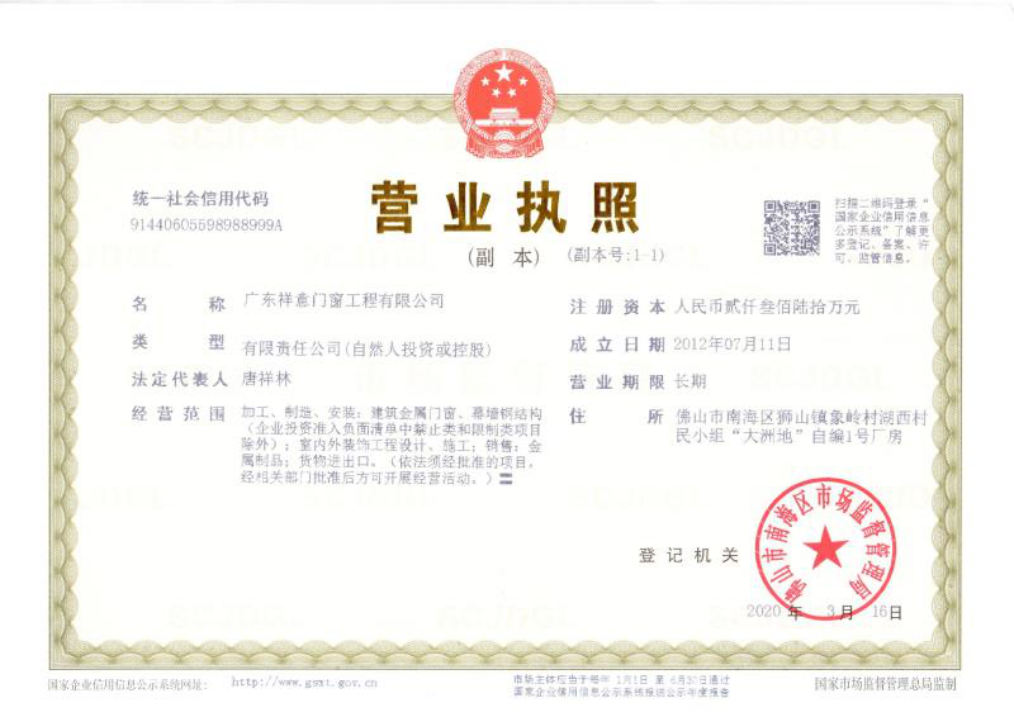 广东祥意门窗工程有限公司是一家专注铝合金门窗工程及门窗加工、制作的优质企业。公司凭着精湛的技术服务和优良的售后服务,已成功完成多个优质项目。